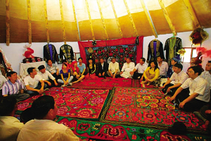 毡房里其乐融融,发言的不仅有哈萨克族,还有维吾尔族、蒙古族、汉族、回族等民族的群众,大家表达了和睦相处的愿望,表达了对家乡的赞美和热爱。