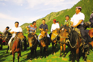 座谈会结束后,大家又来到新地沟草原,举行哈萨克族民间传统体育活动,哈萨克族群众纷纷参加姑娘追、摔跤、叼羊、赛马等活动。一时间人声鼎沸,欢歌笑语,草原上呈现出一片欢悦的景象。