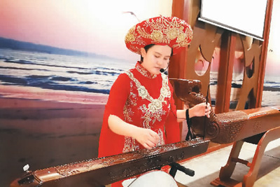在京族文化传承与保护中心,记者遇到63岁的独弦琴艺术家苏春发和32岁的讲解员赵霞。“我5岁跟叔叔学独弦琴,11岁拜姑丈为师,1991年以来,我亲手教出来的学生已有300多人。”今年5月,苏春发获得国家文旅部颁发的“京族独弦琴艺术代表性传承人”证书。京族姑娘赵霞曾参加“京族哈妹组合”,进入第十四届CCTV青歌赛原生态组全国决赛,并荣获团体优秀奖。她左手摇柱,右手拨弦,当场为我们演奏一曲悠扬、委婉的京族民歌《过桥风吹》,把京族少男少女的情动心境演绎得非常唯美。