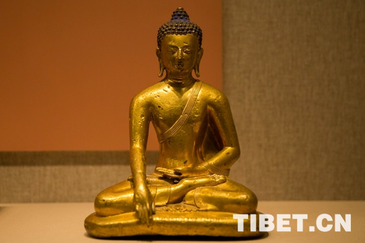 图为正统款铜鎏金释迦牟尼像,该像具有典型的中原汉地风格。摄影:姚浩然
