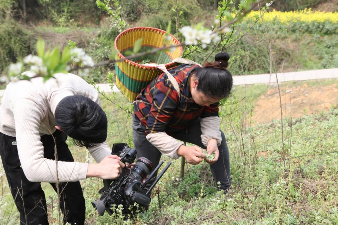 除了忙碌店铺的售卖,黄家英还需抓紧时间,采摘用以制作清明粑的原材料,清明菜。清明菜是清明节气生长的一种野菜,学名佛耳草,有祛风解表,化痰止咳的作用,卫城人称之为“毛香菜”。