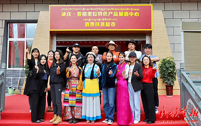 2020年7月,何永群(前左四)在迪庆·香格里拉特色产品展销中心消费扶贫超市参加活动。
