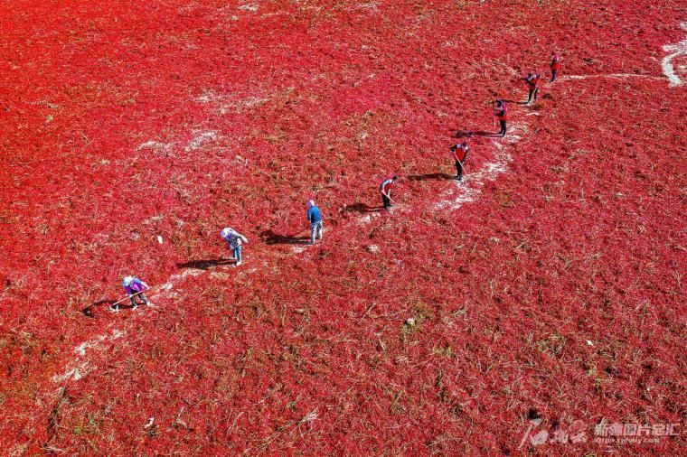 10月10日,农民在晾晒辣椒。眼下,哈密国家农业科技园区千余亩线辣椒喜获丰收。今年,哈密国家农业科技园区以政府引导、合作社牵头的模式调整产业结构,引种用水省、效益高的订单辣椒,助力农民增收致富。李华摄