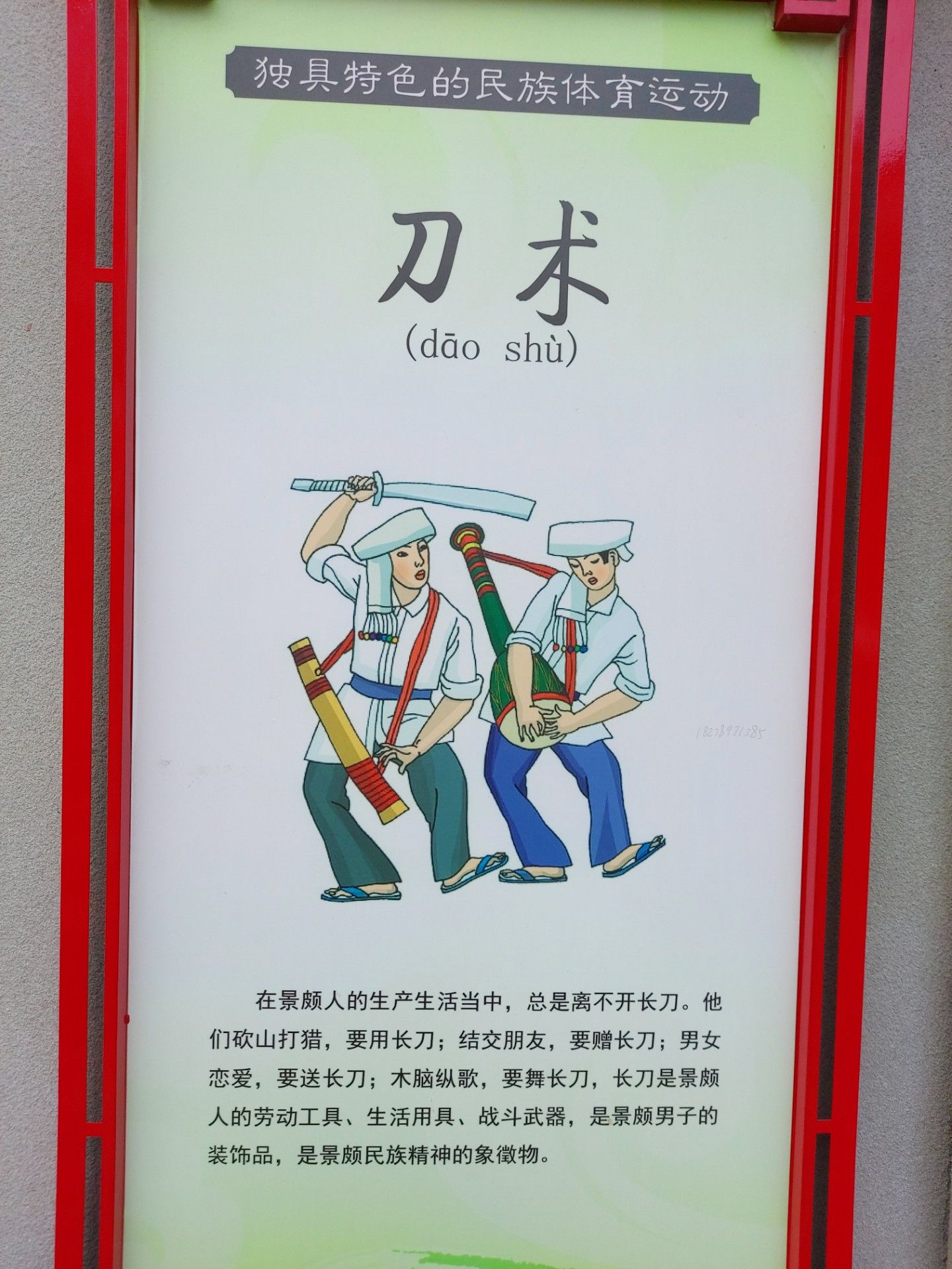 在景颇人的生产生活当中,总是离不开长刀。他们砍山打猎,要用长刀;结交朋友,要赠长刀;男女恋爱,要送长刀;木脑纵歌,要舞长刀,长刀是景颇人的劳动工具、生活用具、战斗武器,是景颇男子的装饰品,是景颇民族精神的象微物。
