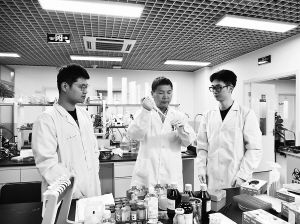 程勇(中)在指导学生做实验。 中央民族大学供图