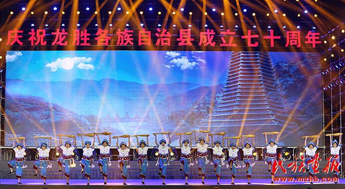龙胜各族自治县70周年大庆文艺晚会现场。
