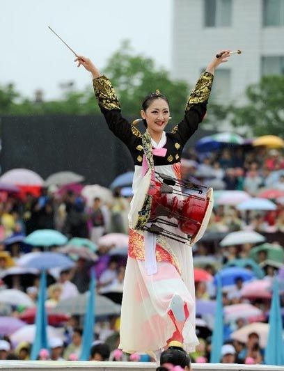古代的长鼓,用獐皮做左边的厚鼓皮,用狗皮做右边的薄鼓皮,鼓筒采用木材或多层纸、薄铁等材料制成。长鼓有沙市6个铜制的龙头形钩子,钩住松紧绳.松紧绳用三股真丝线制成,每只鼓上装有8全套袖,即用来调整鼓绳的皮套。长鼓起源于我国的宋代,后来流传到朝鲜半岛,成为朝鲜民族音乐的主要打击乐器。我国东北朝鲜族聚居的地方,长鼓在朝鲜族音乐和舞蹈中起重要作用。长鼓的右边用一根饰彩穗的竹条敲,左边用手,右边声高左边声低,能敲击出丰富多彩的节奏,著名的朝鲜族长鼓,在全世界闻名,艺术水平相当高,真正代表了能歌善舞的朝鲜民族的艺术特色。