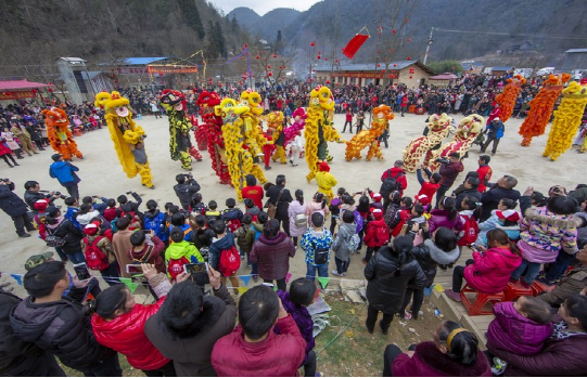 恩施人过年,离不开群体娱乐,从城镇到乡村,群众参与程度高,以玩龙灯、玩狮子、划采莲船、打连厢、打耍耍为主。