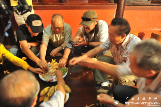 西行音乐公路之旅在享用土司盛宴——“三滴水”后,剧组被壮民族创造的具有深厚民族文化贯穿其中的民族饮食文化所折服,被壮民族热情好客的情绪所感染。西行音乐公路之旅执行导演刘畅说,北京有满汉全席,想不到在广南这个地方也有壮族自己的“满汉全席”,他说,我和我的小朋友们都惊呆了!