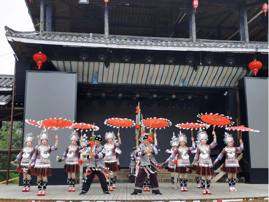 从程阳八寨民俗、民风、劳作、竞技、婚恋等元素着手,结合景区实景,展现侗族原生态生产生活风情。——平寨演艺中心
