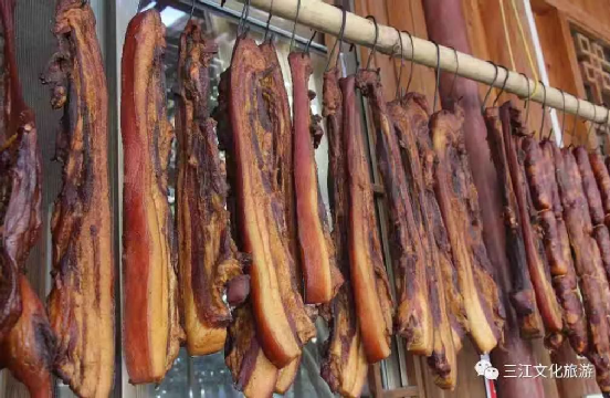 体验古城美食文化。一年岁之尾,一碗腊味香,过年最不可少就是腊味。丹洲腊味经历过秋风的洗礼和柚子皮、甘蔗的熏陶下,腊味香味浓郁,吃起来味道醇香,肉质肥而不腻。