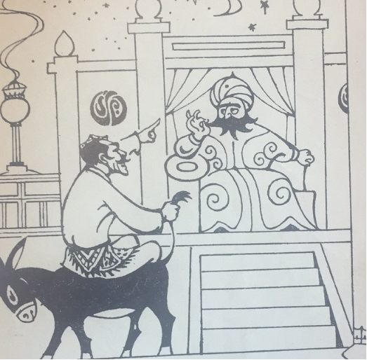 成群成群的人来看告示,看过都摇摇头走开了。只有阿凡提看了告示,就骑上毛驴,赶到王宫去了。