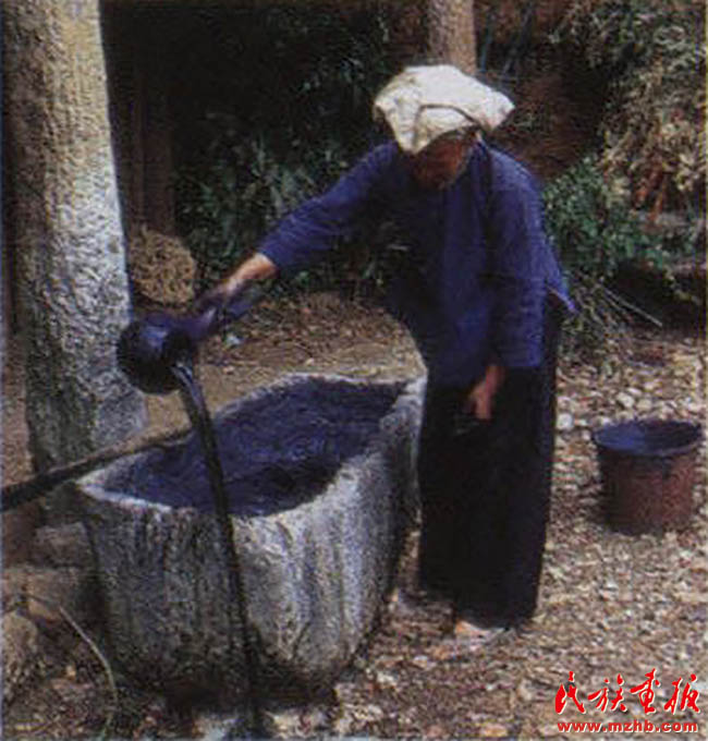 制作蓝靛是一件普通却又很神圣的事情,蓝靛里蕴藏着黑衣壮崇拜的黑色