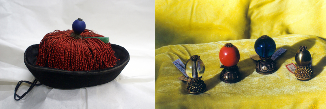 满族传统帽子种类较多,主要分为凉帽和暖帽两种。过去,满族人常戴一种名为“瓜皮帽”的小帽,上尖下宽,由六瓣缝合而成。底边镶一小檐,有的用织金缎包边。帽顶缀有“算盘结”,帽檐下方正中镶有珍珠玛瑙或小银片。因这种帽为六瓣缝合,取“六合”,即天地四方“统一”之意,故盛行起来。满族入关以后,受中原文化影响,也取其“六合统一”之意,开始戴用此帽,而且颇为流行。