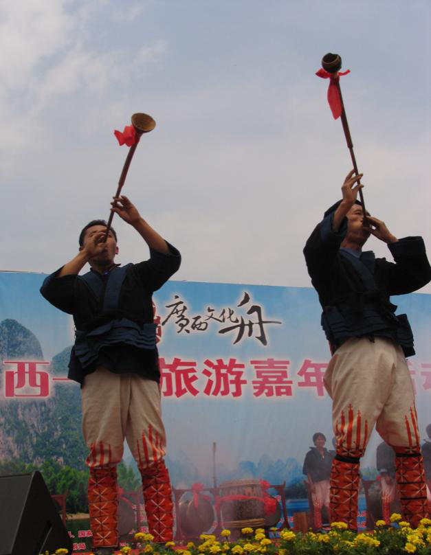 民间娱乐和日常祭祀用的乐器,有长鼓(黄泥鼓)、铜鼓、唢呐、洞箫、笛子、铜铃、简板、长号、牛角、铜锣和皮鼓等。长鼓、牛角、竹笛等乐器,在宋代的乐器中,已广泛采用,是十分动听的一种乐奏。牛角,是瑶族特有的古老乐器,演奏时用以伴奏,其声“鸣鸣”然,远近无不听闻。长号、铜锣、钹、二胡等乐器是外族传入瑶区的,他们除了吸取外族演奏的技艺之外,根据自己的民族特点,增添了不少的本民族生活色彩,演奏技巧更为高超,深受群众欢迎。