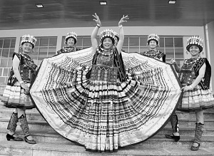 舞蹈《美丽的百褶裙》通过艺术的手法,从不同角度展示了被联合国科教文组织誉为“人类文明活化石”的南丹县...
