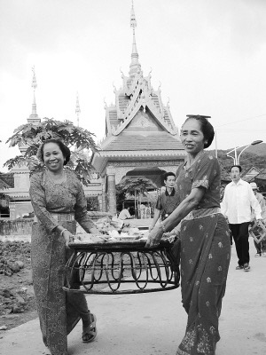 关门节上,傣家妇女用美食款待客人