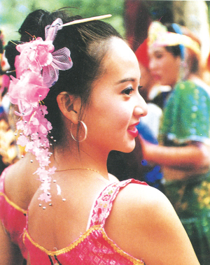 使用香料多是傣家菜的又一特色。西双版纳素有植物王国之称,这里生长着许多带有香味的植物,也就为傣家人烹饪提供了得天独厚的香料。像其中的香茅草、香辣柳、野生大芫荽等都是傣家常用的香料。这些香料烹制而成的香茅草烤鸡、香茅草烤鱼、大芫荽炒牛肉、香八角炖鸡等香味浓郁醇厚。不过,这些香味过于浓烈的菜肴,外地人未必都能喜欢。当然其中也有一些南北口味皆宜的菜肴,像油炸香蕉这道菜,是把香蕉直接放进油里去炸,香蕉外面不包裹糊状外衣,炸出来外观是黑糊糊、软塌塌的,不算太美观,但由于已经将香蕉中的甜汁炸出,吃起来倒是十分可口。还有一道菜是用香蕉叶包裹着糯米、花生、菠萝、香茅草等制作成的点心,类似于八宝饭,十分香甜宜人。傣家人吃米饭时习惯于抓起饭团先用手挤捏几下再入口,据说捏过的饭团更好吃。我们也试着抓捏饭团,果然挤捏过的饭团更显软绵香润,也许这是西双版纳的大米所独具的特色吧。