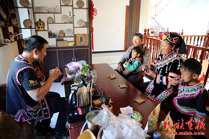 一家人坐在6米高的客厅里看着高清电视节目,偶尔围坐在一起品味着来自景迈山的古树茶,张俊波的脸上满是幸福。他说:“拉祜族是快乐民族,我们喜欢用歌声和舞蹈表达快乐的心情。这种发自内心、难以言表的快乐是党和国家长期关怀我们西南边疆少数民族才能实现的。”