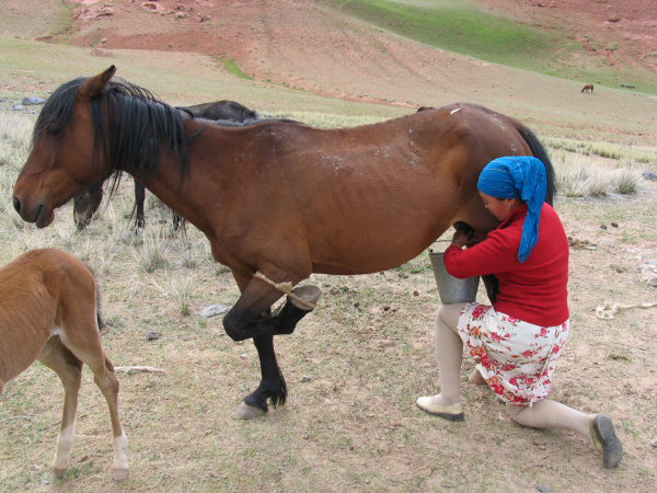 柯尔克孜人民的日常饮食来源之一——马奶(刘军摄)