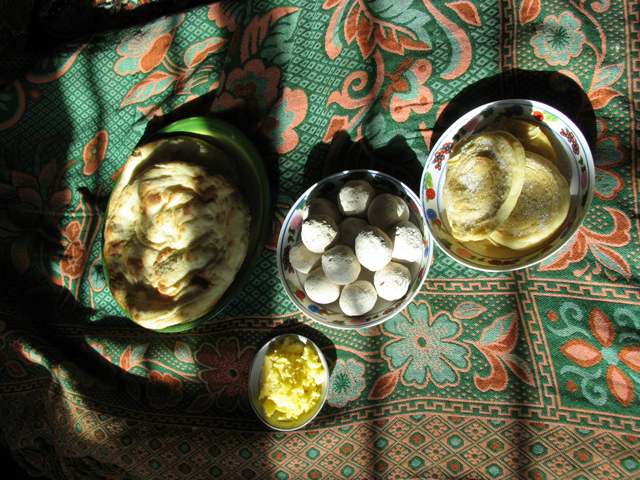 柯尔克孜人民日常饮食中的奶制品和面食(刘军摄)