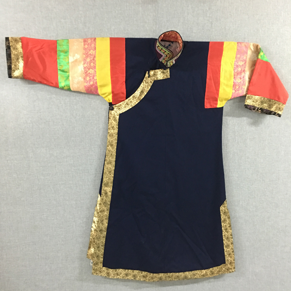 作为土族传统文化重要载体的“彩虹衣”,从物质和精神文化层面承载着土族历史文化的重要信息。民族文化宫博物馆收藏的这件土族立领右衽大襟五色袖女子“彩虹衣”,历史悠久、制作精良,是我们了解和研究土族传统文化的重要实物资料。