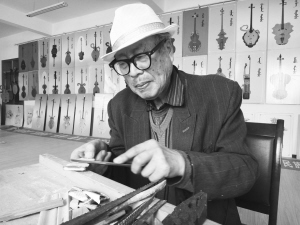 (题图为何晓在打磨东布尔零件。他的梦想是制作100把新式东布尔。)