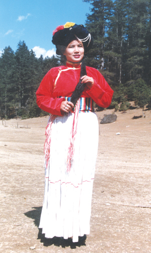 如火襟衣 似雪褶裙 虹彩腰带 山花红艳的普米族服饰