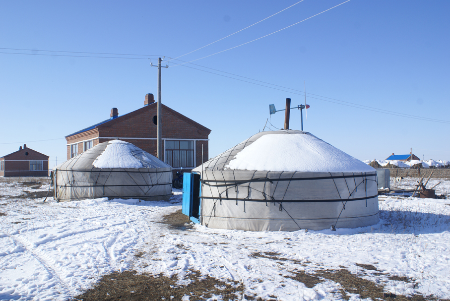 牧区主要的住房是“蒙古包”,鄂温克人称住房为“纠”,分别有“奥布海纠”和“俄儒格纠”。前者是一种形式简陋的蒙古包式的住房,一般为打猎、拉脚、打羊草时的临时住房,或为经济困难人家迫不得已时所居住。建造“奥布海纠”需要二三十根榆木杆子,顶端用绳子结在一起,下端插进地里形成“纠”的架,用苇子搭盖出呈伞状的棚房。这种房早期没有定形的门,一般向南开一小口出入,仅以苇捆及毡子作门。后来“奥布海”也装置顶孔,材料是榆木和柳木,凿出现代蒙古包的包顶。圆顶的边缘上钻有小孔,以便插进木杆,成锥形。同时用苇子搭盖成屋,冬季门里挂上一层毡子防寒。“俄儒格纠”也就是现在所称的“蒙古包”,因为圆孔屋顶而得名。蒙古包的木架是用上、中、下三节结构组成而成,外面的挡帘根据季节不同而样式不同,夏季采用柳条串成帘围在包外,用芦苇串成伞形帘,盖在上面挡雨。冬季则用帆布外加毡子围严,以保包内温度,近年冬季在包内床下搭热炕。蒙古包一般选在阳坡、地势较高、用水方便、靠近牧场的地方搭盖。在搭盖蒙古包时,雨季要搭得斜度大些,以防漏雨;冬季为免受强风吹袭,则搭建的斜度小。蒙古包内置有床、炉子,有木箱柜、桌子等用具。近年来,随着经济的发展,住土房、砖房的越来越多。值得一提的是鄂温克族的牧民虽无固定住所,却有固定建筑,那就是他们的仓库。鄂温克族的仓库极为奇特:先砍去相邻两棵大树的树梢,作为柱子,然后用木头垒出一间悬空的仓库,地上斜竖一根砍有阶梯的木柱为梯。仓库中存放食品、猎物、衣服、用具等。牧民从不上锁,其他猎人可任意取用,事后如数归还即可。