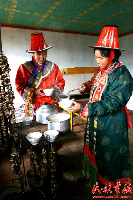 酥油奶茶是裕固族招待贵客的饮料,它们能够帮助远道而来的客人抵御风寒