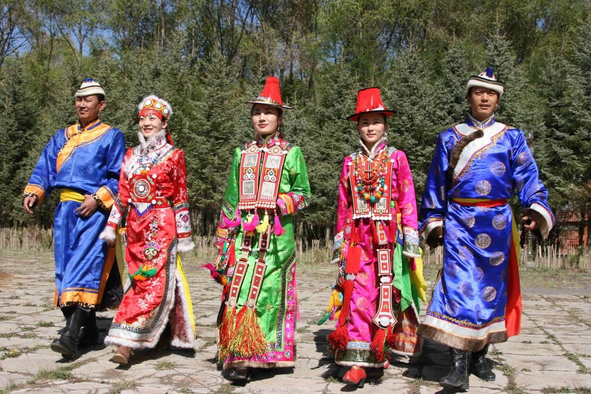 裕固族服饰大致可分为妇女服饰、未婚女子服饰和男子服饰三类。妇女服饰上有“衣领高、帽红缨”的特征,妇女的帽子特点鲜明,东部各部落的妇女帽子形似礼帽,但顶部呈小圆顶形;西部各部落妇女帽顶则是尖顶,帽沿后部卷起。红缨帽一般以芨芨草编织或羊毛擀制帽胚,用红布做帽里,白布做帽面,帽沿为镶有花纹的黑边,帽顶配有红缨,故称“红缨帽”。裕固族妇女服饰中的头面是一件非常精制而价值昂贵的民间工艺品,用银牌、珊瑚、玛瑙、彩珠、贝壳等穿缀而成,共分三条,胸前左右两条,背后一条。头面也是裕固族已婚妇女和少女的区别标志,妇女出嫁成婚后方可戴头面。裕固族男子服饰也有其独特之处,头戴金边白毡帽,帽沿后边卷起,身穿大领偏襟长袍,衣料大多以布、绸、缎或褐子、兽皮为主,扎彩色腰带,佩有腰刀、火镰、鼻烟壶、烟荷包等饰品。裕固族有专门的婚礼服饰,色彩和配饰都有一定的规矩和要求。
