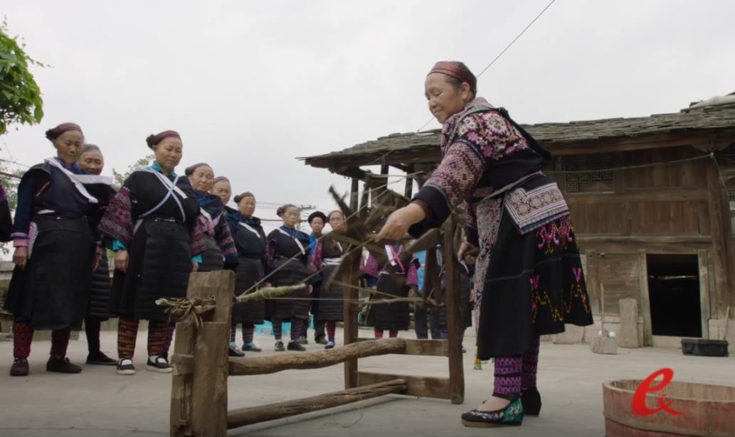 苗族挑花制作过程-纺纱