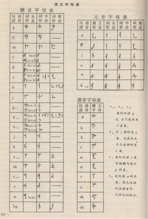 满文字母有元音6个、辅音字母19个,借音字母10个。