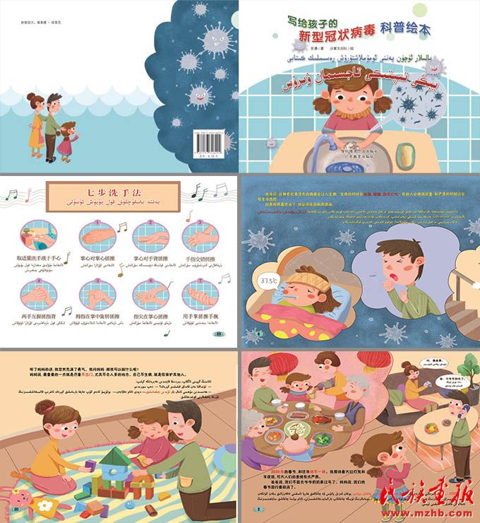 喀什维吾尔文出版社联合出版的《写给孩子的新型冠状病毒科普绘本》(汉维对照版、电子版)。