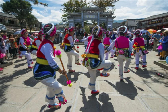 在白族女子的包头头饰上,蕴含着一个大家非常熟悉的词语:风花雪月。垂下的缨穗象征下关的风,艳丽的花饰象征上关的花,帽顶的洁白是苍山雪,弯弯的造型是洱海月,足见白族群众的精巧灵思。
