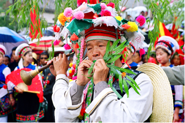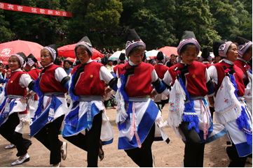 以太邑、云龙、洱源为主要代表的山区白族服饰。生活在山区的白族,对山区自然条件生存依赖性较强,如太邑白族妇女服饰,妇女的头饰较为简单,整个包头用一块一丈二尺长的黑布在头上缠绕成筒状,然后在呈筒状的黑色包头正前端镶一个用黑色硬布制作的三角形饰物作帽正,三角形饰物上钉满小银泡,并在顶端镶一颗红色流璃珠作点缀,整顶头饰尽显简朴之美。从头饰的特征来看,其受彝族文化影响较深,在色彩和质地上与坝区白族头饰有很大的区别,山区白族头饰厚重,坝区白族头饰轻盈而飘逸。