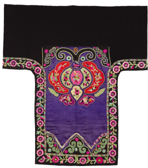 北京服装学院民族服饰博物馆藏贵州雷山地区苗族花蝶纹贴补刺绣背扇片。