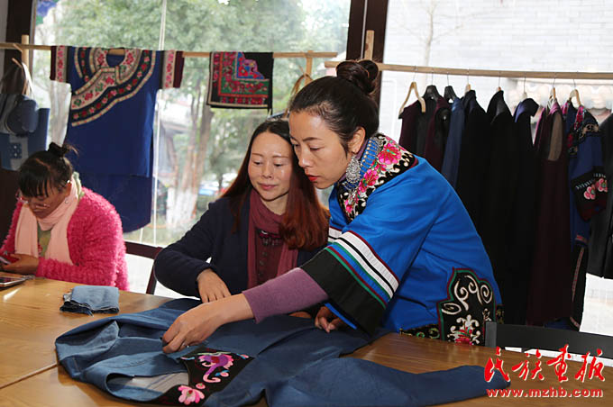 这位对彝族传统服饰文化情有独钟的汉族设计师在设计服饰上大有用心,从绣品图案的选定到服饰的整体裁剪都事必躬亲。她还经常下乡采风,向当地彝族绣女学习传统彝绣知识,再把传统图案与现代元素相融合,一件件具有现代风格配上传统彝绣图案的服饰经过她的手,别具创意的现代风彝族服饰就像变魔法似的展现在了大众眼前。