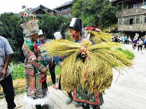 为何鼓藏节期间必须制作“百鸟衣”?这是村寨中古已有之的规定:鼓藏节期间所穿的“百鸟衣”必须是新制作的;如果是旧的“百鸟衣”,必须确保没有穿着它参加过葬礼,但是参加过婚礼的“百鸟衣”是可以穿的。