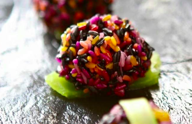 米饭常捏成饭团,便于携带,食之口味又别具一格。彩色糯米饭也捏成饭团,不同颜色的饭团陈列在一起,鲜艳夺目。彩色饭的色彩原料,不仅起到着色的作用,也起到调味的作用,不同的色饭有不同的香味。米饭经着色处理后,不易馊、不易坏,米饭着色起到了防腐、保鲜的作用。