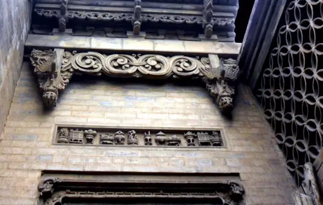 清代,北京紫禁城宫廷内墙面夹柱的通气孔也都使用砖雕,镂雕花鸟图案,牢固砖雕 而美观,且利于空气流通。