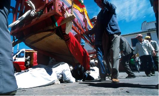 2、出棺送葬:出殡时,街坊邻友自带抬具帮助抬棺。为死者念经引路,孝男拄拐哭丧棒走在棺前,孝女走在棺后。棺材抬至绕棺处,摆在高凳上,由念经先生举行绕棺仪式。念完《绕棺经》,称为“搭桥过路”,遇到过桥时,孝男跪在桥上,棺从身上抬过,称为“背棺”。
