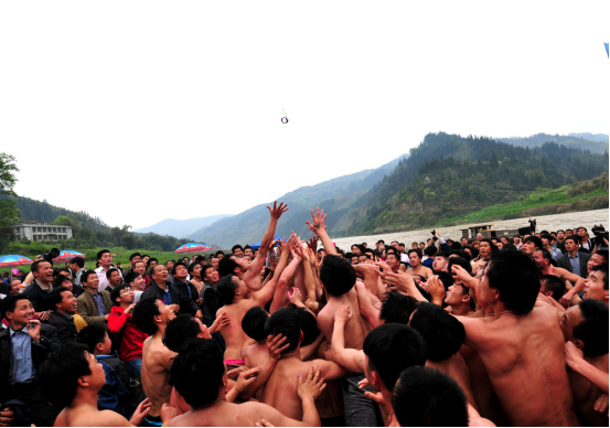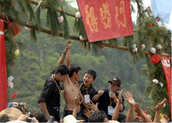 随着铁环的降落,抢花炮活动开始了
