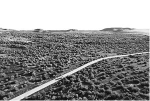 回看村史,根登带领牧民人工种草、沙漠造林的场景似乎历历在目,治沙确实太难了,常常是事倍功半,一场沙尘暴把新栽的灌木连根拔走。后来他们也渐渐摸出门道,从沙丘的低处由下往上治理,形成围攻之势,这样治沙成果就保住了。到20世纪60年代中期,乌兰敖都村庄附近基本被固沙灌木覆盖,牲畜饲养量也由最初入社时的200多头(只)发展到5000多头(只)。除栽种固沙灌木外,乌兰敖都还栽植白杨树、枣树、葡萄树和苹果树,搞多种经营。后来又逐步引进飞播、网格治沙等先进技术,绿色发展的步伐逐年提速。