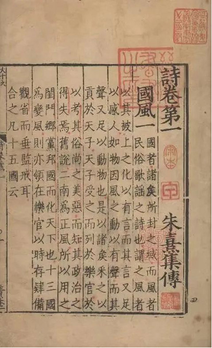 诗集传二十卷(宋)朱熹撰。(图片来源:国家古籍保护中心微信公众号)