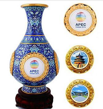 2014年APEC会议中,作为国礼馈赠给各经济体领导人的三件礼品中就有一件采用景泰蓝工艺,以藏于北京故宫博物院的霁红釉玉壶春瓶为原型,由中国七位国家级、北京市工艺美术大师联手创作的《四海升平》景泰蓝赏瓶。