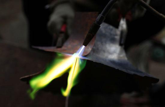 景泰蓝的制作的第一步,就是制胎。这是将不同规格型号的紫铜,根据设计图的要求裁剪出不同形状,或是扇形,或为圆形,再用铁锤把它敲打成瓶、盘、碗、罐等各种形状的铜胎。粗看那些已经制作成型的铜胎,颜色朴素,其貌不扬,似以一种平和淡然的心态,等待着即将到来的明丽璀璨。