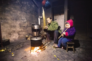 “少不学芦笙,老没老婆疼!”这是侗族老年人的口头禅。杨枝光积累“老婆本”的时间特别早,在他7岁时,别的小朋友还在玩过家家,杨枝光就坐在鼓楼的篝火旁跟着抽水烟的老爷爷学吹芦笙了。“我18岁那年,就凭着吹芦笙俘获了她的心!”杨枝光围在炉火前,摆好手势吹响了芦笙。这一次的声音是情意绵绵的。杨枝光在火炉旁吹芦笙,大妈在灶前炒菜。两个人就像年轻时对歌一样不说话,只以芦笙为媒。杨枝光年仅三岁的孙子看爷爷吹得起劲,也凑到火炉边要抢爷爷的芦笙。