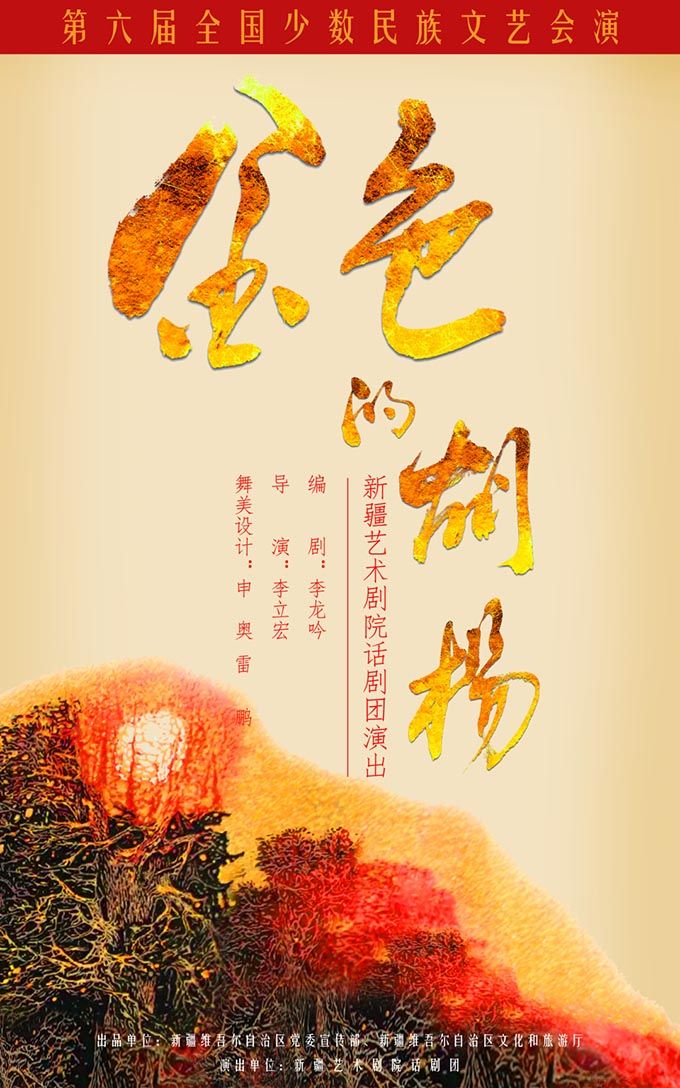 9月14日,新疆艺术剧院话剧团创作的话剧《金色的胡杨》登上第六届全国少数民族文艺会演舞台,在央视网和国家民委门户网站以线上形式与全国观众见面,向全国观众讲述新疆民族团结、脱贫攻坚的感人故事。