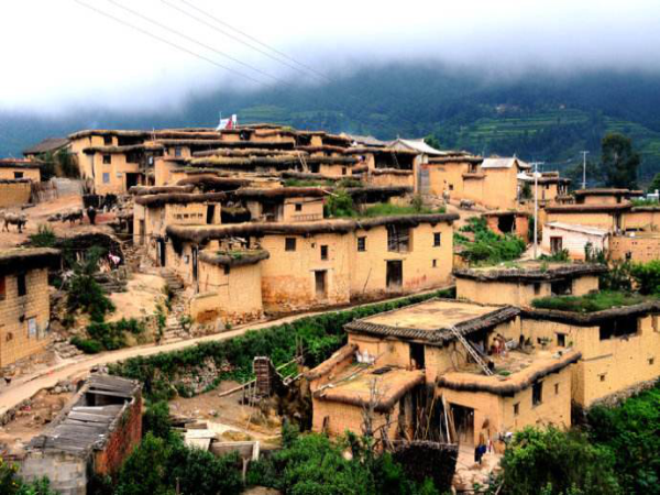 彝族是农牧兼营的民族,村寨的分布与坐落有其独特的传承。彝族的村寨多坐落在海拔2000~3000米的山区、半山区,相沿聚族而居。为适应西南地区亚热带气候和山地特点,彝民们便就地取材,以一种最容易、最节省钱财人力的建房方式,创造出中国建筑的独特样式——土掌房。土掌房多建于山地斜坡上,以石为墙基,用土坯砌墙或用土筑墙,墙上架梁,梁上铺木板、木条或竹子,上面再铺一层土,经洒水抿捶,形成平台房顶,不漏雨水。有的大梁架在木柱上,担上垫木,铺茅草或稻草,草上覆盖稀泥,再放细土捶实而成。